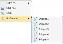 Set Snippet: This feature provides a way to create up to five temporary stamps. By choosing Snippet 1 through 5, the selection is saved at the top of the attachment in a tool bar, until you logout.
